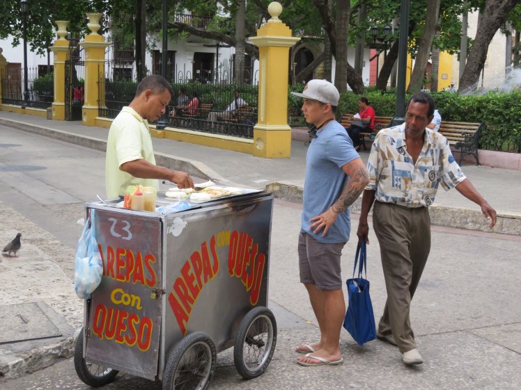 The first thing I noticed when I arrived to Cartagena, was how hard the locals tried to speak English to us (mainly because they were trying to sell us things, but none the less). This was something that we didn’t find common in the other countries we have visited in South America. The vendors on the street sell everything from fruit, arepas (a type of flat bread made from maiz dough), coffee and coconuts to jewellery, shoes, bags and soccer jerseys. Only some of them are a little aggressive, most of the time a simple “no gracias” is sufficient. So far, I think the people of Colombia have been the friendliest in South America.