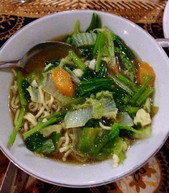 There are so many places to eat in Kuta, it’s so great to be able to have so many good quality options in one place. We stumbled across a real gem on poppies one called Bamboo corner. From the outside it looks like nothing special. Inside, it smells like cats (in my opinion and is why Tom and I nicknamed it cat cafe), the table cloths were always filthy, there is a pregnant cat wandering around the restaurant everyday with patches of her fur missing and the staffs customer service includes throwing menus at you and never smiling even though their shirts read “smile, it costs nothing”. It’s not all bad though, which is why I’m recommending it. The food portions are massive and it is some of the most delicious, authentic Balinese food I’ve ever had. The prices are ridiculously cheap, cheaper than anywhere else we saw. Tom and I could both eat a meal each and our bill together would come to $3, no joke! A delicious veggie noodle soup costs $1 and a huge Nasi goreng was $1.50 just to name a few. On more than one occasion we ate here for lunch and dinner on the same day. It’s always filled with people and has excellent ratings on trip advisor.