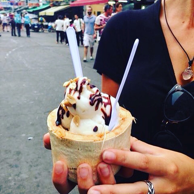 1. Take a walk down Khao San road. We stayed right near Khao San road so we spent a lot of time there. By day it’s quite a simple street with some cool markets selling the usual touristy stuff you’d imagine in Thailand but by around 5pm the whole street transforms. There’s food stalls selling anything from coconut icecream for $1, Pad Thai for $1 to a variety of different bugs on a stick for $2. (Tom was brave enough to eat a big juicy grasshopper and a scorpion…I stuck to the Pad Thai), there’s bars full of people dancing and staff trying to sell you buckets, there’s massage chairs filling the street full of tired tourists getting their feet massaged and there’s different types of live music and dj’s blasting from every restaurant and bar. It’s definitely not as crazy as Bangla road in Phuket but it’s up there!