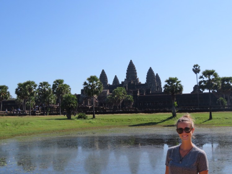 We stayed at Panary guesthouse which was awesome! Although it wasn’t in the main area of town it didn’t matter as there were restaurants near by and all tuk tuk’s around town cost $2. We organised our temple tours with the tuk tuk driver from the hotel. He was a really nice guy, the same age as us. You have an option of a 1, 3 or 7 day temple pass. We went with the 3 day one. On our first day the driver gave us the option of doing the ‘small tour’ or the ‘grand tour’. We chose the small tour as we thought we’d just ease ourselves into it the first day to avoid ‘temple burn out’. Wrong!! For some reason the ‘small tour’ is actually the largest one. We saw around 12 temples over 8 hrs in 30+ degree heat (wearing pants and a t-shirt for respect). It was HOT and very tiring. We were so excited to get back into the tuk tuk after each temple to get a nice breeze as we drove to the next one. It was a tough but rewarding day. I lost track of the names of the temples by the end of it, they all just blurred into one.